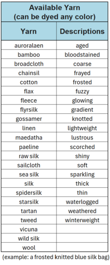 • Item material must be listed as one of these types for it to work (Example: if a bag inspection doesn't say its cloth or leather, this can't be applied)