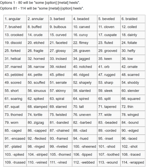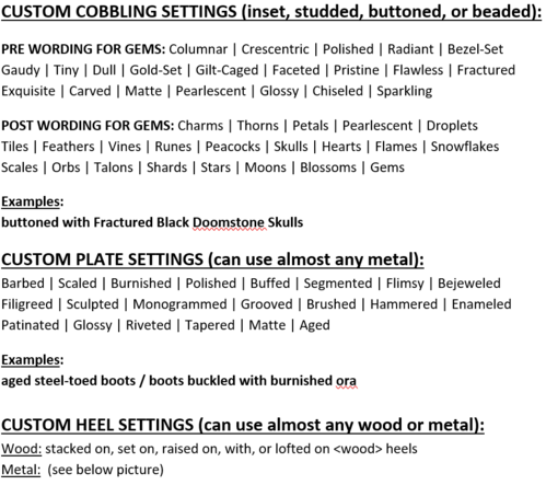 • Example: a Silvery Green Everine, would become a "Spider-Shaped Everine" on footwear (if a pattern isn't used, the full gem description should show on footwear).