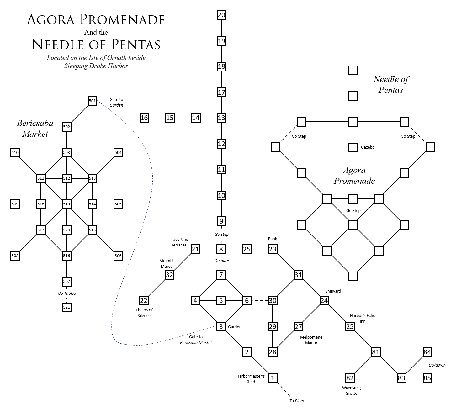 Line Map created by Alosaka for the Bericsaba Market & Sleeping Drake Harbor. Posted with permission from the player.